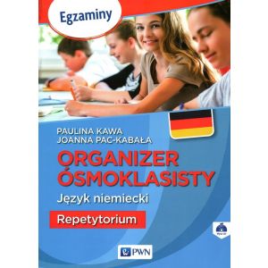 „Organizer Ósmoklasisty. Język niemiecki. Repetytorium” to skuteczna metoda przygotowania do egzaminu ósmoklasisty. Unikalna formuła repetytorium podzielonego na 30 tygodni organizuje pracę ucznia i gwarantuje wysoki wynik na egzaminie. Jest to pozycja uzupełniająca w stosunku do wiodących podręczników języka niemieckiego stosowanych powszechnie w klasach 7-8 szkoły podstawowej. Celem repetytorium jest nie tylko gruntowna i systematyczna powtórka przed egzaminem ósmoklasisty, ale także organizacja pracy ucznia. Materiał podzielony jest na 30 tygodni nauki, usystematyzowany według bloków tematycznych zgodnych z nową podstawą programową. Publikacja „bezboleśnie” przeprowadzi ucznia krok po kroku przez proces powtórki – to zaledwie 3 strony tygodniowo! Repetytorium zawiera: • część teoretyczną, na którą składają się gramatyka, struktury językowe, scenki sytuacyjne oraz przydatne zwroty i wyrażenia, • część ćwiczeniową zawierającą zadania rozwijające wszystkie sprawności językowe oraz liczne zadania gramatyczne, • klucz odpowiedzi ułatwiający uczniom samodzielną naukę i kontrolę, • nagrania do wszystkich zadań na rozumienie ze słuchu. Repetytorium polecamy także nauczycielom do wykorzystania jako dodatkowy materiał do pracy z uczniami na poziomie A2+, którzy nie zdają egzaminu ósmoklasisty – np. przy okazji powtórek. Dzięki podziałowi na jednostki tematyczne świetnie sprawdzi się także jako pomoc umożliwiająca uczniom przygotowanie się do lekcji i sprawdzianów.
